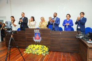 Na solenidade, tanto a presidente do TJ, Cynthia Resende, quanto a titular da Vara Cível de Candeias, Dra Ana Bárbara Barbuda Ferreira Mota, receberam o título de cidadãs Candeenses, entregues pelos parlamentares Diego Maia (vice-presidente da Câmara de Vereadores), que homenageou a presidente, e Tânia Batista, que entregou a honraria à juíza titular do município.